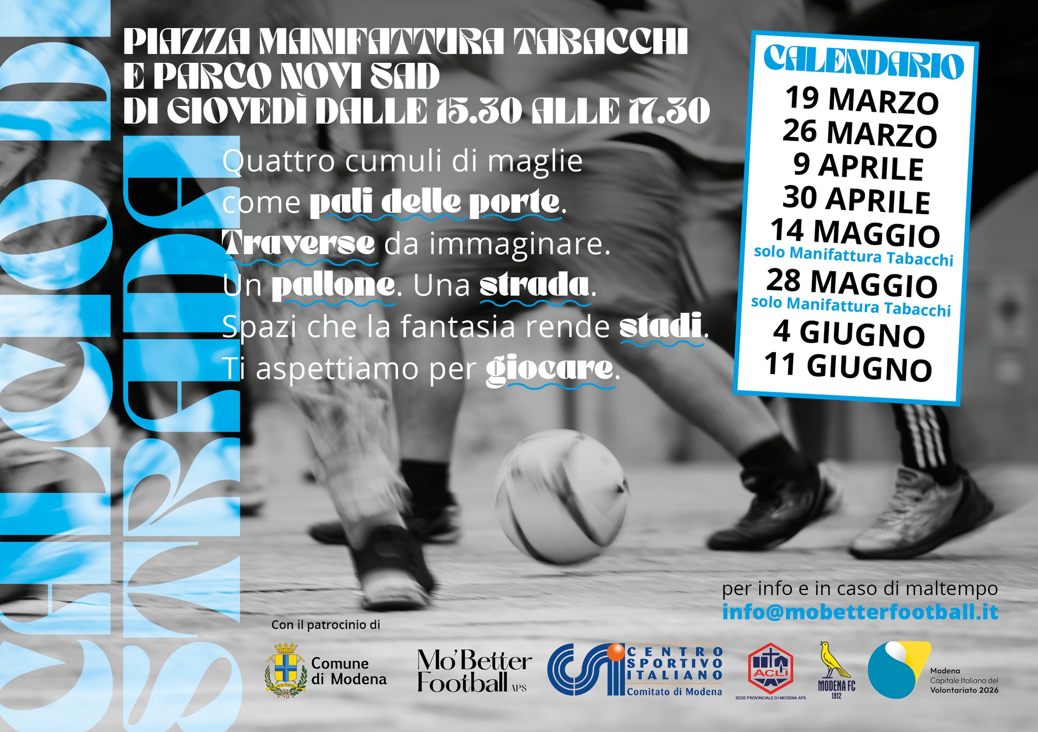 Quattro cumuli di maglie da usare come pali delle porte, le traverse da immaginare. Un pallone. una strada, ma anche un [...]