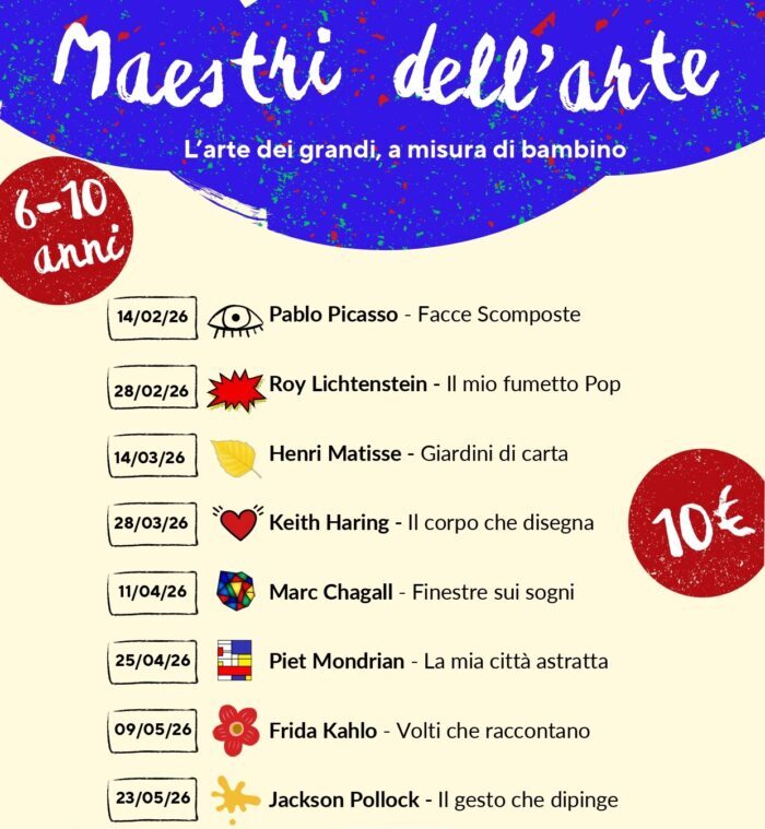 ProgettoLavoratorio via Munari 14, Modena📆 14 e 28 febbraio Una rassegna di 𝗹𝗮𝗯𝗼𝗿𝗮𝘁𝗼𝗿𝗶 𝗰𝗿𝗲𝗮𝘁𝗶𝘃𝗶 𝗽𝗲𝗿 𝗯𝗮𝗺𝗯𝗶𝗻𝗲 𝗲 𝗯𝗮𝗺𝗯𝗶𝗻𝗶 𝟲–𝟭𝟬 𝗮𝗻𝗻𝗶 ispirata ai grandi artisti del Novecento. Nel primo incontro, dedicato a Picasso, 𝘀𝗶 𝗴𝗶𝗼𝗰𝗮 𝗰𝗼𝗻 𝗳𝗼𝗿𝗺𝗲 𝗲 𝗰𝗼𝗹𝗹𝗮𝗴𝗲 per creare facce cubiste tridimensionali in piena libertà espressiva. Nel secondo laboratorio, ispirato a Roy Lichtenstein, i bambini entrano nel mondo della Pop Art realizzando un 𝗳𝘂𝗺𝗲𝘁𝘁𝗼 𝗽𝗲𝗿𝘀𝗼𝗻𝗮𝗹𝗲 𝗰𝗼𝗻 𝗰𝗼𝗹𝗼𝗿𝗶 𝗽𝗿𝗶𝗺𝗮𝗿𝗶 𝗲 𝘀𝘁𝗮𝗺𝗽𝗮, partendo anche da una propria fotografia. Arte, gioco e fantasia per sperimentare l’arte divertendosi.