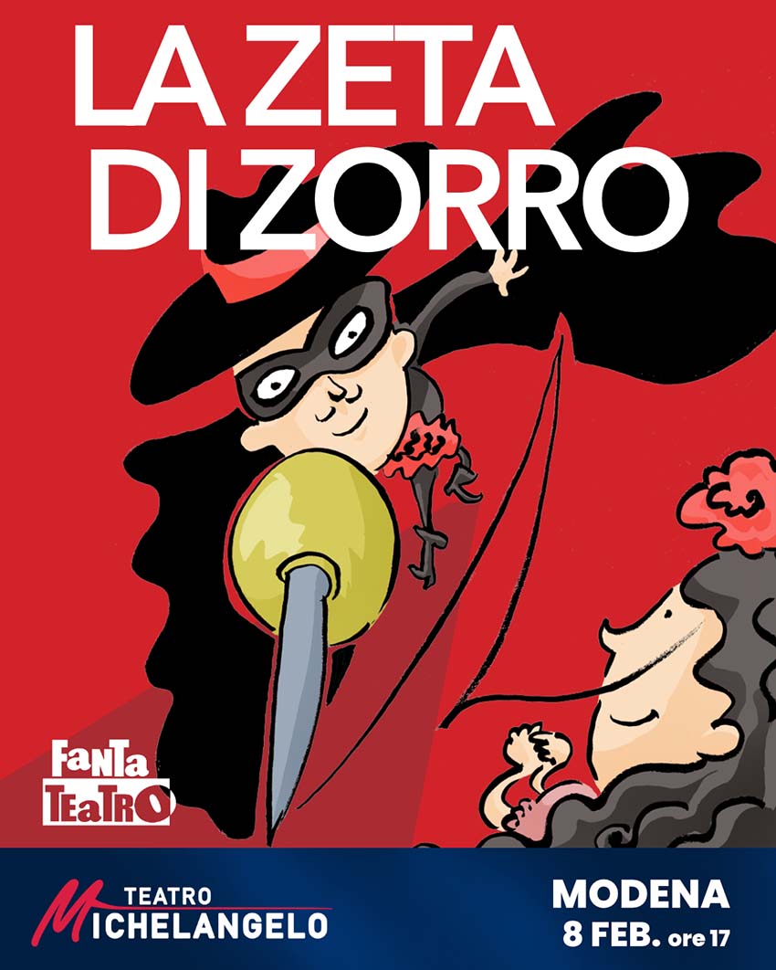Teatro Michelangelo Via Giardini 257, Modena📆 8 febbraio 2026 ore 17 al Teatro Michelangelo Siete pronti a combattere i criminali di Los Angeles? Allora vieni al Teatro Michelangelo il giorno 8 febbraio 2026 per 𝘂𝗻 𝗻𝘂𝗼𝘃𝗼 𝘀𝗽𝗲𝘁𝘁𝗮𝗰𝗼𝗹𝗼 𝗱𝗶 𝗙𝗮𝗻𝘁𝗮𝘁𝗲𝗮𝘁𝗿𝗼: 𝗟𝗮 𝘇𝗲𝘁𝗮 𝗱𝗶 𝗭𝗼𝗿𝗿𝗼! Un eroe mascherato lotta contro le ingiustizie e la tirannia a favore della povera gente di Los Angeles. Si fa chiamare Zorro, sebbene la sua reale identità sia quella del ricco Don Diego de la Vega. Il misterioso Zorro combatte il perfido comandante Ortega che mira all’assassinio del governatore della California. Tuttavia in città Zorro non è l’unico nemico di Ortega: anche la giovane Raquel si oppone ai suoi spietati ordini.