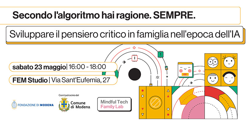 Oggi molte decisioni, informazioni e persino ragionamenti passano attraverso algoritmi e intelligenza artificiale. Questo workshop aiuta genitori e figli a interrogarsi [...]