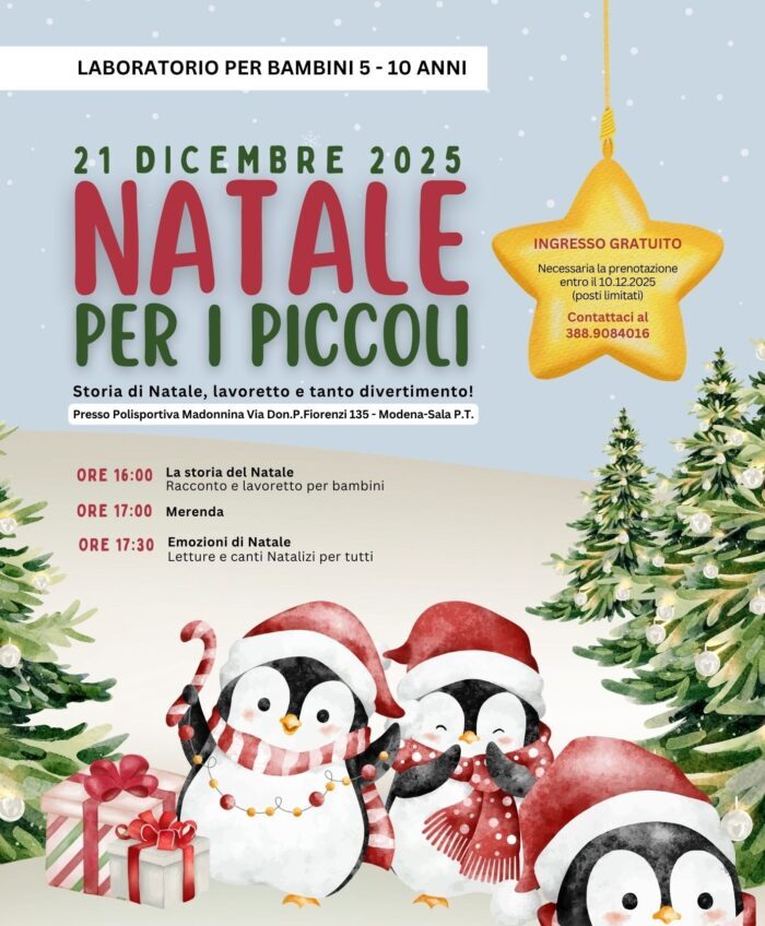 Laboratorio di Natale per 𝗯𝗮𝗺𝗯𝗶𝗻𝗶 𝗲 𝗯𝗮𝗺𝗯𝗶𝗻𝗲 𝟱–𝟭𝟬 𝗮𝗻𝗻𝗶! ✨ Un pomeriggio speciale tra storie natalizie, lavoretti creativi, una merenda offerta e tanti canti di Natale per chiudere in allegria. 📌 Attività a ingresso gratuito, con prenotazione obbligatoria.