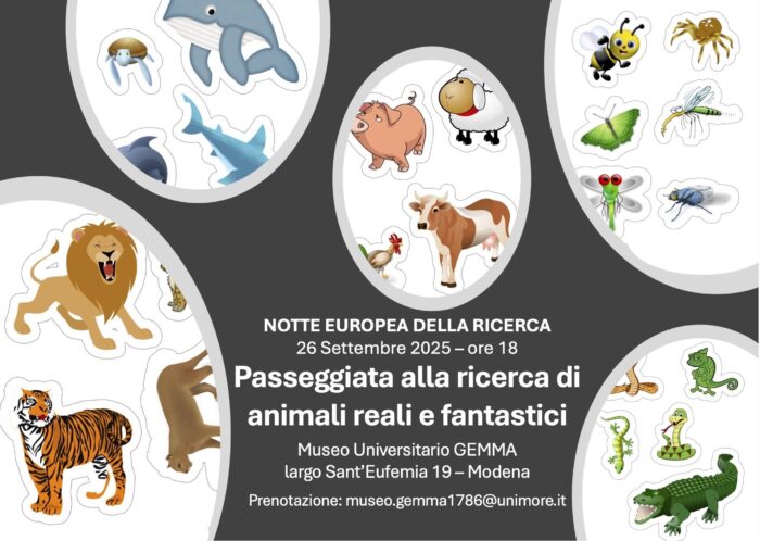 Set 26 18:00 - 19:00 Passeggiata alla ricerca di animali reali e fantastici Museo Universitario Gemma Largo Sant'Eufemia 19, Modena Evento Details Ottieni indicazioni