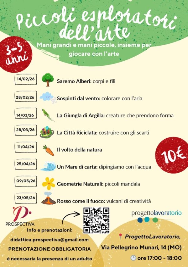 I bambini modelleranno l’argilla dando forma ad animali reali o immaginari, esplorando morbidezza, pressione e segni lasciati da dita e strumenti. Foglie, rametti ed elementi naturali arricchiranno le loro creazioni, trasformando il laboratorio in un mondo tattile tutto da scoprire. Un’esperienza di manipolazione ed esplorazione per bambini e bambine dai 3 ai 5 anni, ispirata alle sculture di animali nell’arte.