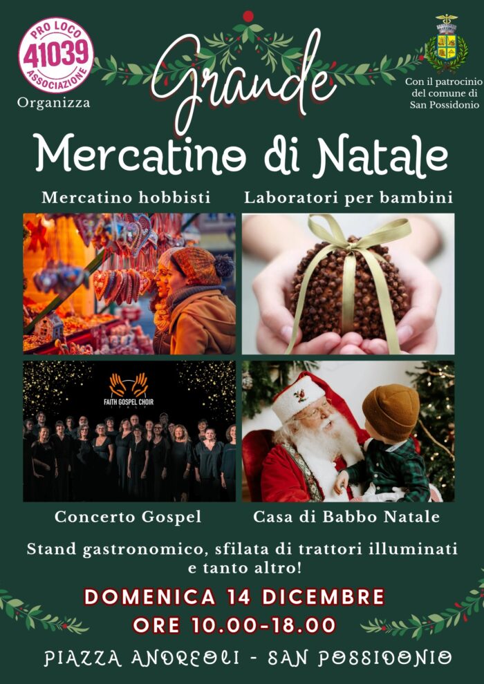 Mercatino di natale con laboratori per bambini gratuiti casa di Babbo Natale trattori illuminati concerto gospel