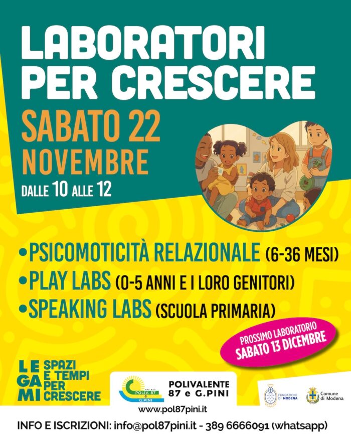 I “Laboratori per Crescere” fanno parte del progetto Legami – Spazi e tempi per crescere, rivolto a famiglie con minori dai 6 mesi ai 18 anni, per favorire l’inclusione e l’accesso a percorsi educativi formali e informali. Un’opportunità di crescita che accompagna bambini e ragazzi dall’infanzia all’adolescenza.