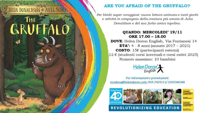 Per bimbi super coraggiosi: nuova lettura animata e tanti giochi e attività in compagnia della creatura più amata di Julia Donaldson e del suo furbo amico topolino.