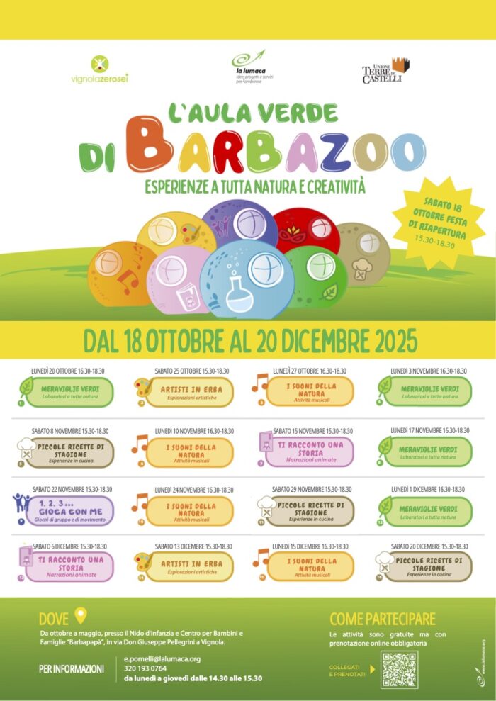 “L’aula verde di Barbazoo” è un programma di appuntamenti tematici dedicati ai bambinə e ragazzə, dai 3 agli 11 anni. Uno spazio a misura dei più piccoli e un laboratorio di esperienze dove creare occasioni di incontro e condivisione e promuovere stili di vita sostenibili.