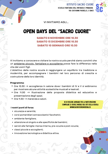 Open Day scuola paritaria dell’infanzia e primaria Sacro Cuore