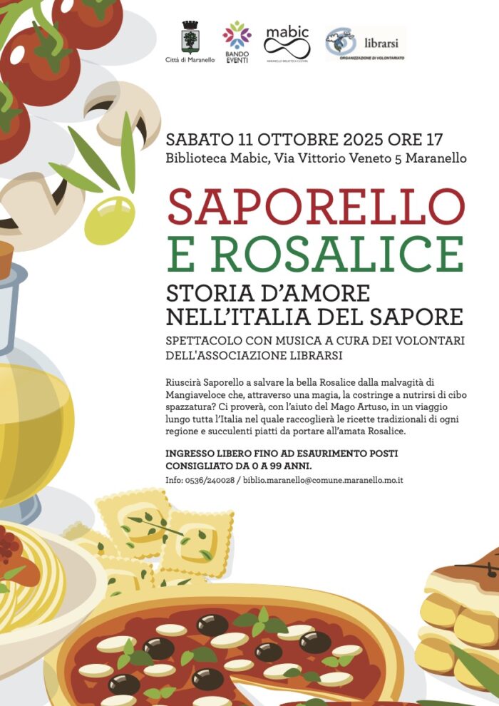 Riuscirà Saporello a salvare la bella Rosalice dalla malvagità di Mangiaveloce che, attraverso una magia, la costringe a nutrirsi di cibo spazzatura? Ci proverà, con l’aiuto del Mago Artuso, in un viaggio lungo tutta l’Italia nel quale raccoglierà le ricette tradizionali di ogni regione e succulenti piatti da portare all’amata Rosalice.