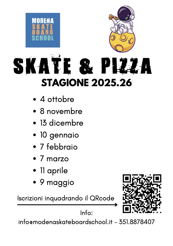 Alla Modena Skateboard School, ogni mese trasformiamo il nostro skatepark indoor in una festa esclusiva per i bambini con lโevento โSkate & Pizzaโ. Questa serata speciale permette ai genitori di godersi una pausa mentre i bambini si divertono a fare skate e a gustare deliziosa pizza in compagnia dei loro amici e degli istruttori.