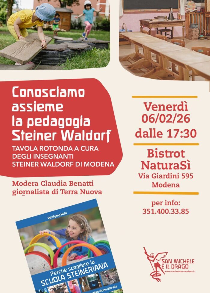 L’incontro, dal titolo “Conosciamo la pedagogia Steiner-Waldorf”, è a cura degli insegnanti dell’Associazione San Michele e il Drago di Modena.